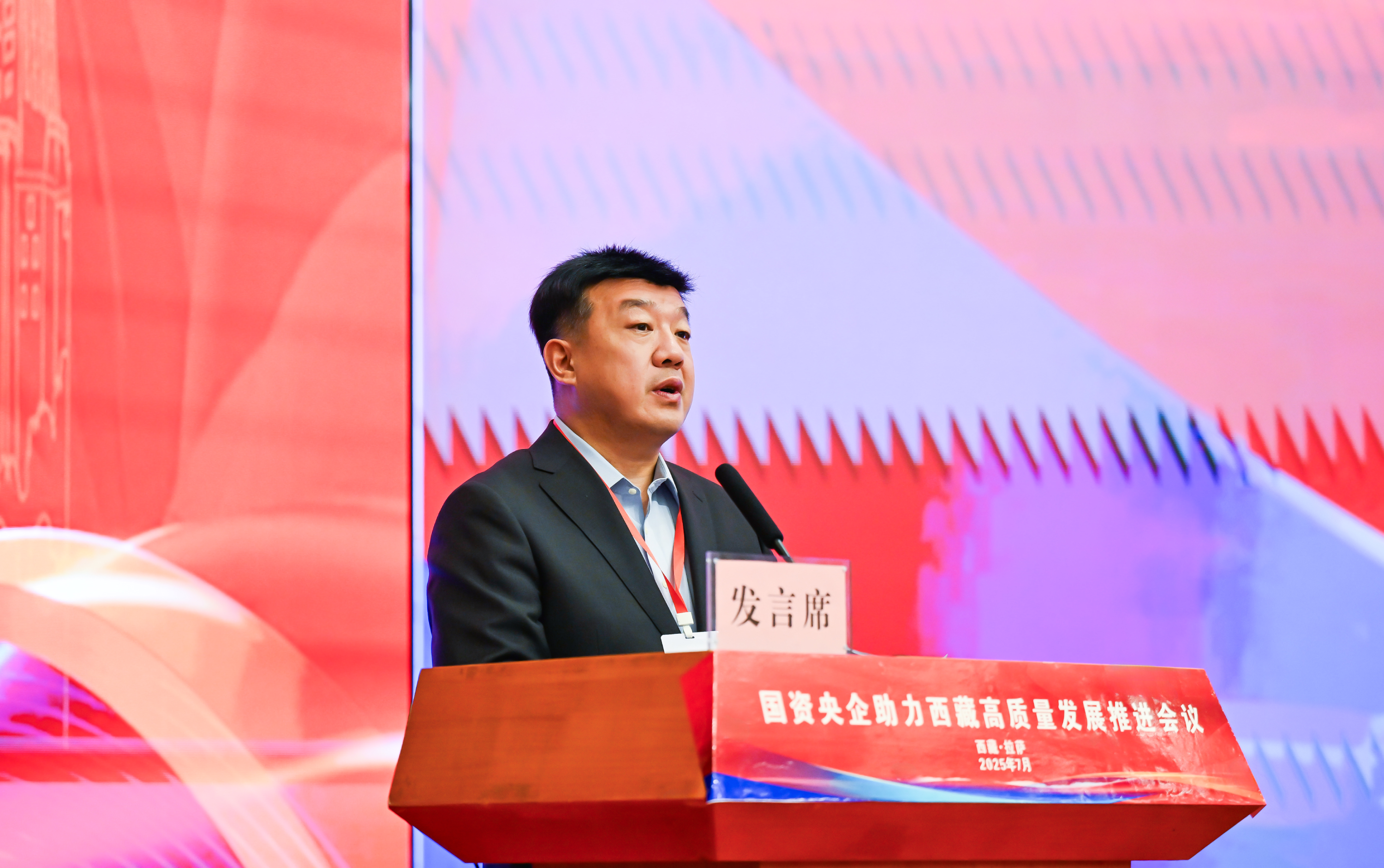 中國大唐集團有限公司黨組書記、董事長呂軍出席會議并作交流發言,代表中國大唐與西藏自治區人民政府簽署合作協議。