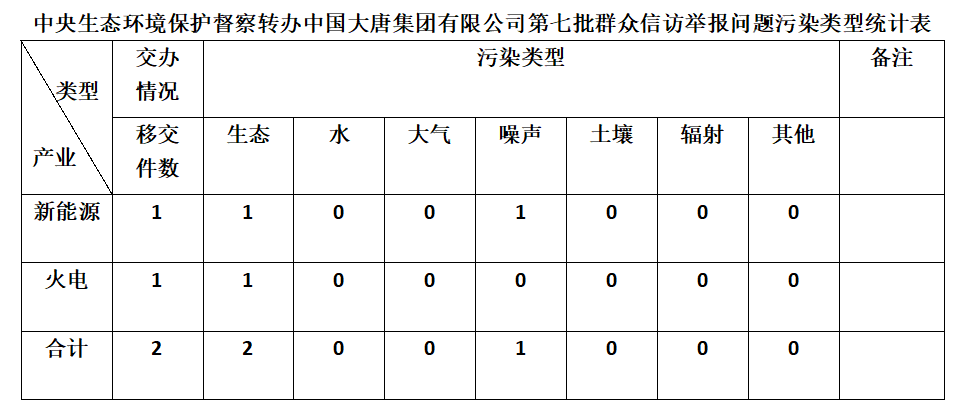 2025年6月10日,中央第七生態環境保護督察組向中國大唐集團有限公司移交第七批群眾信訪舉報件,共計2件,均為來電舉報,涉及噪聲問題1個、生態問題2個。所有舉報件辦理工作已第一時間進入調查核實辦理程序,辦理情況將按照相關要求反饋督察組,并及時向社會公開。