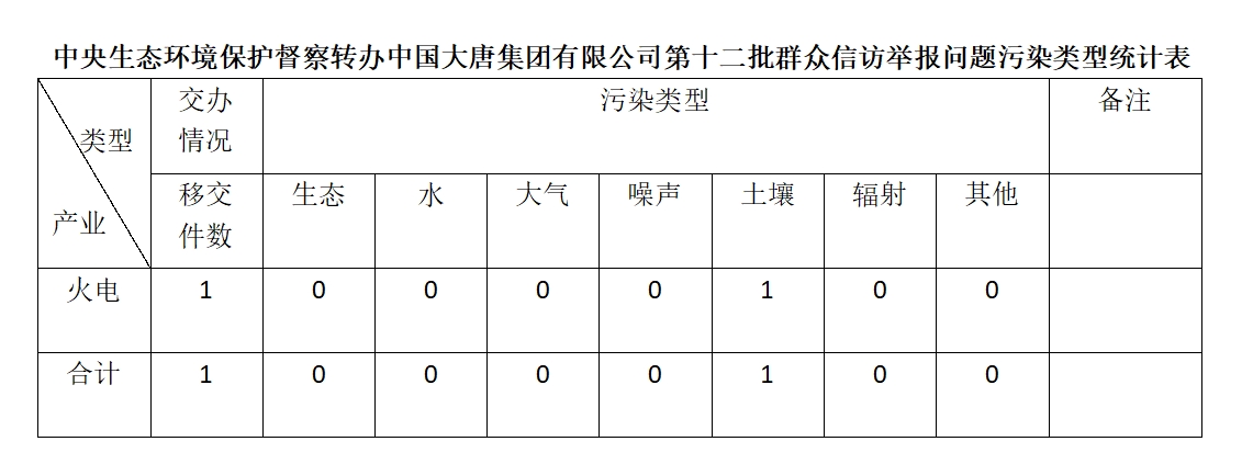 2025年6月16日,中央第七生態(tài)環(huán)境保護(hù)督察組向中國(guó)大唐集團(tuán)有限公司移交第十二批群眾信訪舉報(bào)件,共計(jì)1件,為來(lái)信舉報(bào),涉及土壤問(wèn)題1個(gè)。所有舉報(bào)件辦理工作已第一時(shí)間進(jìn)入調(diào)查核實(shí)辦理程序,辦理情況將按照相關(guān)要求反饋督察組,并及時(shí)向社會(huì)公開。